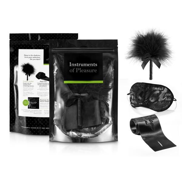 Inspired by the erotic novel Shades of Grey Instruments of Pleasure collection. Deep in the shadows, lives pure seduction. Do you dare? Elements of extreme sensuality with which to carry out some of the most intense games. Green Level. Touch shudders and unleashes the senses. Contains blindfold, restraints and tickler. Plus a packette of Massage Silky Touch lotion.