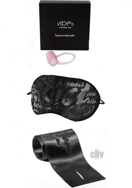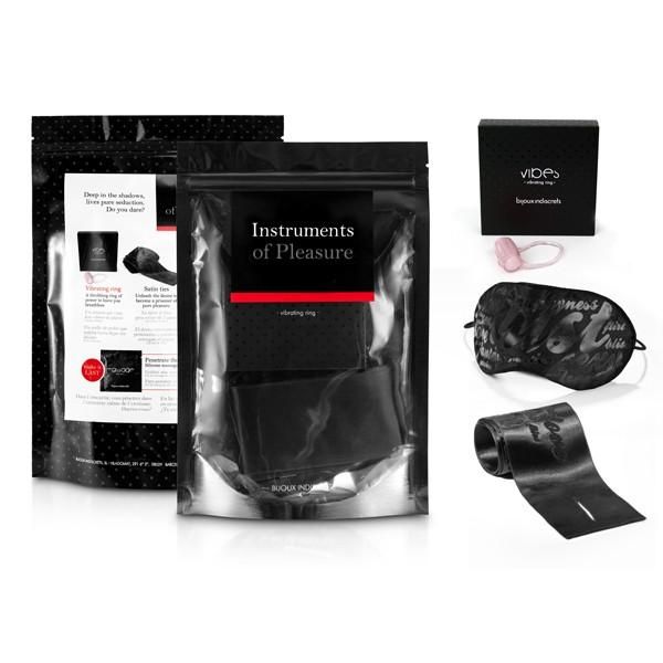 Inspired by the Fifty Shades of Grey Instruments of Pleasure Collection. Deep in the shadows, lives pure seduction. Do you dare? Elements of extreme sensuality with which to carry out some of the most intense games. Red Level. A heart that stirs, a panting whisper, an ecstasy of pleasure. Contents: blindfold, restraints and a vibrating cock ring. Plus a sample size packette of Massage Silky Touch.