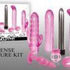 Intense Pleasure Kit from Evolved Novelties. 8 separate components in one glorious pleasure kit to maximize your couples play. A snug and stretchy penis ring delivers long lasting performance and features a bullet vibrator for his and hers pleasure.