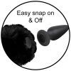 Hop into a sexy scene with this tantalizing tail! Perfect for animal play enthusiasts, SnapOn Tailz now offers a line of bunny tails that will make your bottom wiggle in pleasure! This soft, round ball of fluff is going to adorn your beautiful booty! Play the prey that gets away as your partner tries to pounce! Mix and match this interchangeable bunny tail with any SnapOn Tailz anal plug. This little black bunny tail fits perfect on a SnapOn Tailz silicone anal plug! Let your sultry and seductive side show as you show off your dark desires. Wear it with matching lingerie and accessories to really set the scene and explore how many ways you can make your partner hip-hoppin happy! The SnapOn base is made of ABS plastic. The soft, bunny tail is made of vegan friendly polyester. Spot clean as needed using mild soap and water. Measurements: Length: 5 inches, Width: 5 inches Materials: Polyester, ABS plastic Color: Black Note: Butt plug sold separately Note: Spot clean with a damp cloth as needed. Blow dry fur on a cold setting.