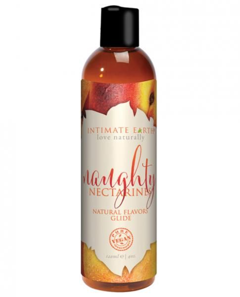 Intimate Earth Naughty Nectarines Glide 4 fluid ounces love naturally. Delicate and lightly scented of nectarines. If you do not have a sweet tooth, instead preferring a delicate fruit flavor over a dessert, we highly suggest spoiling yourself and trying the seductive flavors offered by the nectarines version. Made with Organic Stevia. Ingredients: Plant Derived Glycerin, Propylene Glycol, Flavor, Purified Water, Aloe Barbadensis Leaf Extract, Cymbopogon Schoenanthus Extract, Lycium Barbarum Goji Fruit Extract, Stevia Rebaudiana Leaf Extract.