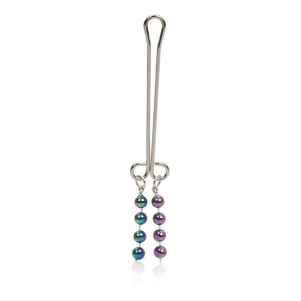 Cleopatra Collection Clitoral Jewelry Pearl Metallic Beads. Non-piercing clitoral jewelry is designed to remain in place without inflicting pain. This item is a type of jewelry used to add to a woman’s sex appeal. This is not a torture device. Non-tarnishing, nickel free body jewelry for women. Safe and pure for body and pleasure. Made using phthalate free, non-toxic materials ABS beads, Steel clip. Clitoral clip measures 4.25 inches long. Bulk weight 1.1 ounces. Category: For Women, Attire & Adornments, Jewelry. Cleopatra Collection Clitoral Jewelry Beads Silver is a registered trademark for California Exotic Novelties. Sex toys and sexual wellness.