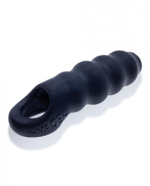 Invader Cocksheath Black Ice from Oxballs. Oxballs invented the modern cocksheath by morphing our original cocksling to a sheath creating the first sheath that really stay on no matter how hard you play. Invader is that good and more, our first open ended sheath with wavy ripples on the shaft, and texture inside, So everyone gets max stimulation. Made of Plus Silicone, our slick soft Silicone and stretchy Thermoplastic Rubber TPR blend.