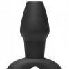 This darkly sexy anal plug has a thrilling feature that allows unrestricted access to their innermost areas! The hollow plug is made of a semi rigid, premium silicone material that is soft enough to enjoy while staying strong enough to keep them spread open and ready. The flared base and tapered tip keeps it in place, even during vigorous use. Measurements 3.75 inches in total length, 3 inches insertable, 1.5 inches in diameter at widest point. Material Silicone. Color Black.