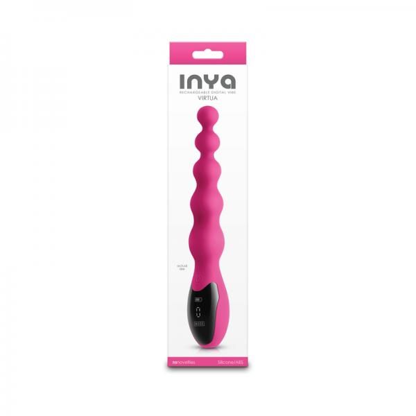Transition to the era of digital technology with Virtua by INYA. A sophisticated vibrator, featuring graduated beads to generate erotic pleasure to each erogenous zone. Keep track of the speeds and functions with Virtua`s sleek digital screen. Made from premium body-safe silicone and ABS, Virtua is rechargeable and water resistant. Suitable for use with all lubricants including silicone. 3 speeds 6 functions 9 modes. Waterproof Rating – IPX7.