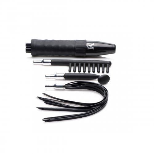 Sizzle the senses with electrosex! This Violet Wand set provides unique and intense sensations with silicone attachments that will not shatter like delicate glass. The mushroom shaped accessory is ideal for sending pinpoint zaps of electricity into your slave or subs supple flesh. The comb features 9 teeth to transmit the current along a long strip of skin. Finally, the flogger will send a shock into them with every sensual stroke or swinging slap! The actual wand allows you to play with a wide range of power, from tingles to jolts. It features a silicone handle that enables a sturdy grip and a long cord that allows you to move freely around your play space. Compatible with most violet wand attachments.