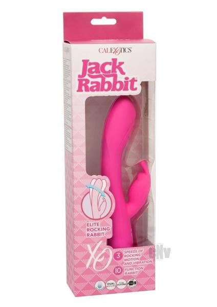 Jack Rabbit Collection Elite Rocking Rabbit Pink Vibrator from California Exotic Novelties. The luxurious Jack Rabbit Vibrator brings thrilling fantasies to life with the sensational Elite Rocking Rabbit. The beautifully designed massager has 10 playful vibration functions and 3 mind blowing massaging G-Spot speeds for a pleasure experience of a lifetime. To maximize and customize your pleasure, the easy touch 3 button control pad lets you independently operate the plethora of vibration and back and forth rocking tip options. While the teasing bunny stimulator flickers, the curved tip vibrates and rocks back and forth for thrilling G-Spot stimulation. The sensuous vibrating tip has a powerful Rocking action to ensure you always hit just the right spot. The fluttering ears and nose of this ravishing Rabbit house a powerful vibration motor delivering blissful external stimulation. The soft, flexible teaser vibrations can be used independently from the Rocking function for the ultimate in a customizable pleasure experience. The self sealing charging port lets you charge up your passion in 2 hours. Use the sleek 3 button control pad to dial into 120 minutes of passionate pleasure play. Specifications: SKUSE061505. Color Pink. Power sourceUSB. 1 Year Warranty. Material type Silicone Shaft, Rabbit, ABS Plastic with Metallic Plating Decor. Features: Phthalate free, Waterproof Vibrations, Rechargeable, Vibrates. Measurements: 9.25 inches by 1.5 inches overall. 5.25 inches by 1.5 inches Shaft. 2.5 inches by 1 inch Rabbit Clitoral Stimulator. Bulk weight 8 ounces. Package 12 ounces. Package: 2.2 inches by 4.1 inches by 13.5 inches. Always clean before and after use. Pat dry before storing. Only use a water based personal lubricant. Categories: Vibrators, Rabbit Style Vibrators, Rechargeable Vibrators, Sex Toys for Women, G-Spot Rabbit Style Vibrators. 2023.