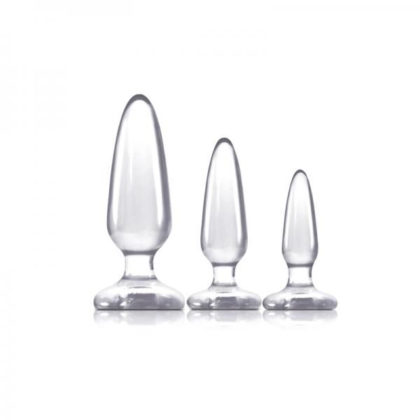 Jelly Rancher Trainer Kit Clear from NS Novelties. Your training starts now! Featuring three sizes of flexible anal plugs, Jelly Ranchers Trainer Kit provides an enjoyable way to expand your sexual limits. Made of odorless Thermoplastic Elastomers TPE, the plugs have strong suction cups and can be used with all lubricants. Product dimensionsmini plug 3.2 inches by 1.7 inches. Small plug 4 inches by 1.7 inches. Medium plug 5 inches by 2.1 inches. Package dimensions 7.3 inches by 7.1 inches by 2.4 inches. Packaged weight 8.70 ounces.