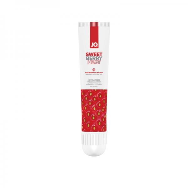 Jo Sweet Berry Heat Flavored Arousal Gel 10ml e or approximately .34 fluid ounce from System JO. Choose the mouth watering flavor of delicious ripe strawberries to heat up your passion. Water based clitoral arousal gel with infused fruit flavor lets you feel intense warming pleasure with a sweet taste that adds playfulness. Features: flavored. Warming arousal feeling. Made without parabens. Vegan formula. Cruelty free and gluten free. Water Based. Kissable. Ingredients: Water, Glycerin, Flavor, Propylene Glycol, Hydroxyethylcellulose, Capsicum Frutescens Fruit Extract, Chlorphenesin, PEG-60 Hydrogenated Castor Oil, Acrylates/C10-30 Alkyl Acrylate, Sucralose, Sodium Hydroxide.
