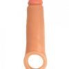 Experience the joy of extra length and girth. Realistic cock head adds 2 inches of length while ball strap keeps the sheath in place. Snug fit helps to maintain erection. Low maintenance and easy to clean. Made in the USA. Color Vanilla Beige. Material PVC.