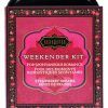 The all new Weekender Kit is here! Be ready for spontaneous romance with these petite sensual Kama Sutra luxuries. Perfect portions fit comfortably in a pocket, luggage, bag or purse for a weekend away. Travel size portions for romance on the go. Includes kissable body treats and sexy feather tickler. Erotic play cards make it fun and sexy. Discreet black tin makes it easy for travel. Ideal for a weekend away.
