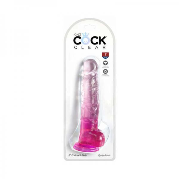 Clearly the best! Created to heighten your pleasure experience, this specially crafted formula is virtually odorless, non-sticky, and easy to clean. King Cock Clear combines a translucent dildo with a realistic cock design. The luminous clarity and lifelike form will fulfill all your fantasies! With its flexible shaft, detailed veins, and defined head, King Cock Clear will engage your senses visually and physically. The powerful suction cup base sticks to nearly any flat surface and makes every dildo harness compatible.