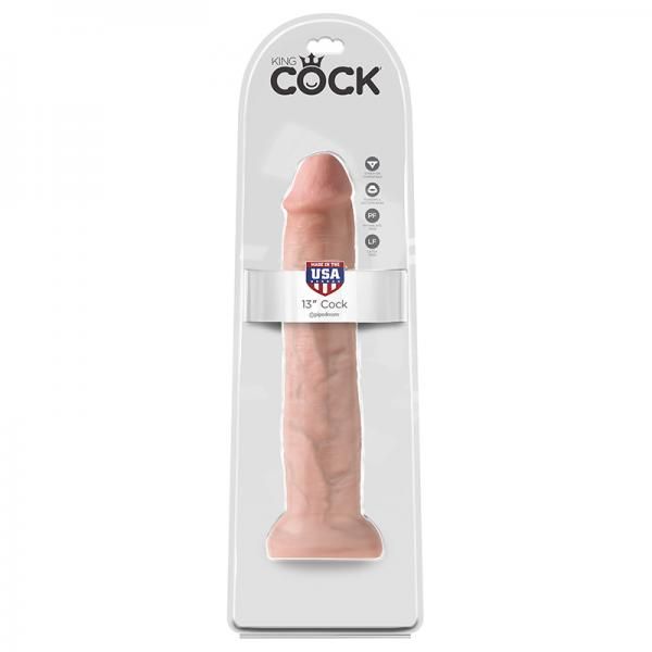 Do you want your dildo to look and feel just like the rock hard stud you have always fantasized about? Stop dreaming and get real! Every vein, every shaft, and every head is carefully handcrafted with exquisite detail to give you the most realistic experience ever imagined. The powerful suction cup base sticks to nearly any flat surface and makes every dildo harness compatible. Made in Pipedream`s American state of the art rubber manufacturing facility, every King Cock is latex free, body safe, and hypoallergenic. Dimensions length 13 inches, width 2.75 inches, girth 8.6 inches, insertable length 11.5 inches.
