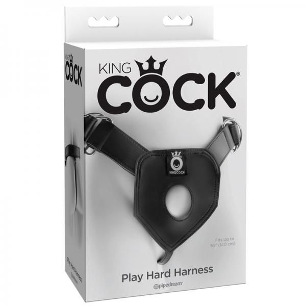 King Cock Play Hard Harness One size fits most Black. When you want your first strap on to look and feel just like the real thing, the King Cock Strap On Harness is just what you have been looking for! The heavy duty vinyl harness keeps everything in place even when the action heats up. The form fitting design hugs your body’s contours and gets even softer and more fitting with each use.
