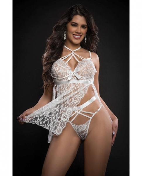 Lace Halter Babydoll W/high Waist Strappy Panty White O/s