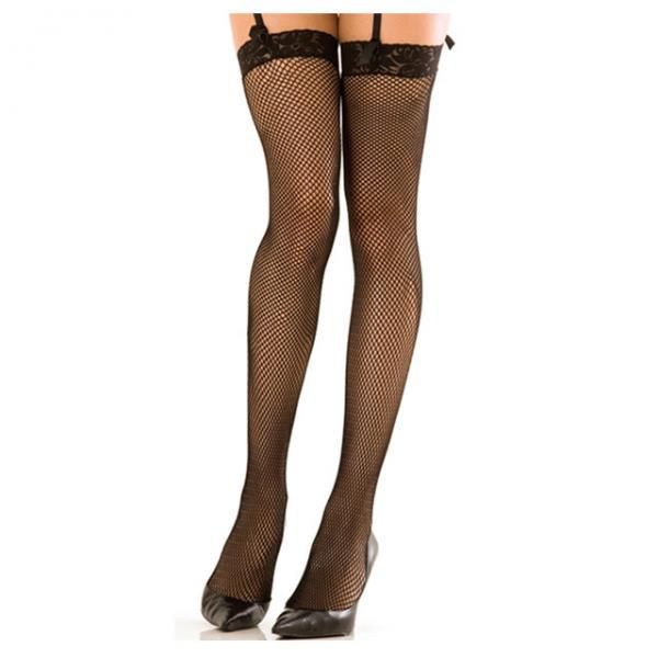 Lace Top Fishnet Thigh High Stockings Black O/S