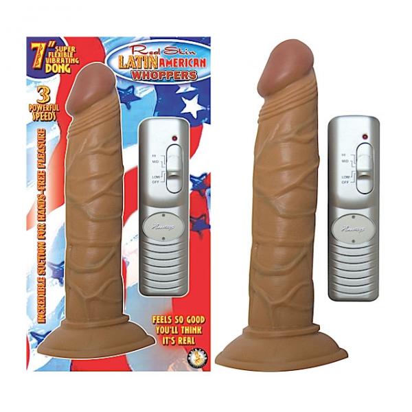 Real skin 7″vibrating dong. 3 powerful speeds. Suction cup base. Material: Dong-PVC, Controller-ABS. Waterproof. Phthalates free. RoHS compliant. 3 AA batteries.