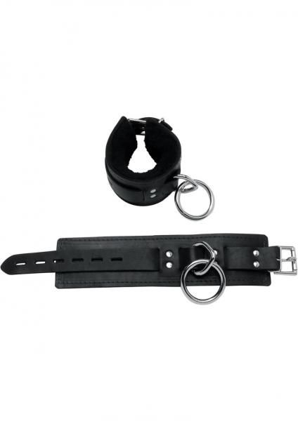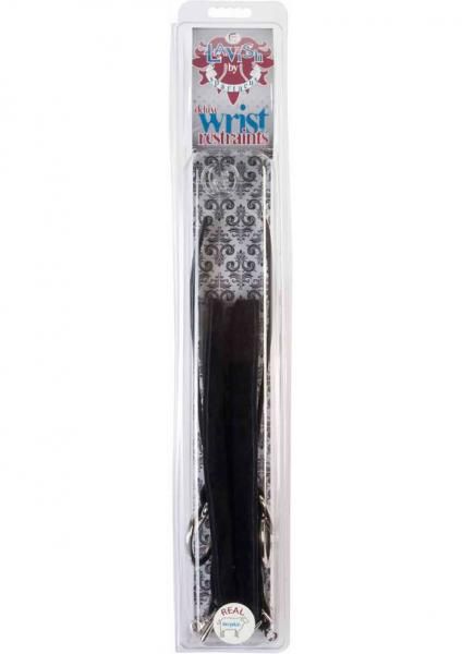 Lavish Deluxe Locking Wrist Restraints With Real Fleece Lining Black