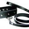 Studded leather collar with D-RingFaux fur lined for comfortAdjusta up to 17 42 Leather leash with Snap Link
