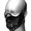 Master Series Lektor Zipper Mouth Muzzle O/S. Keep your plaything zipped up and under control with this half face zipper muzzle from the Master Series. With a sexy vinyl exterior and zipper mouth hole, you get to decide just how much talking your naughty one gets to do. Covering the lower half of the face, this devious muzzle has a neoprene lining and two breathable nose holes. The elastic bands secure the mask in place while remaining pliable. Once on, this mask will create a sense of confinement without being too overwhelming for the wearer. Measurements one size fits most. Materials Vinyl, elastic, metal, neoprene. Color Black.