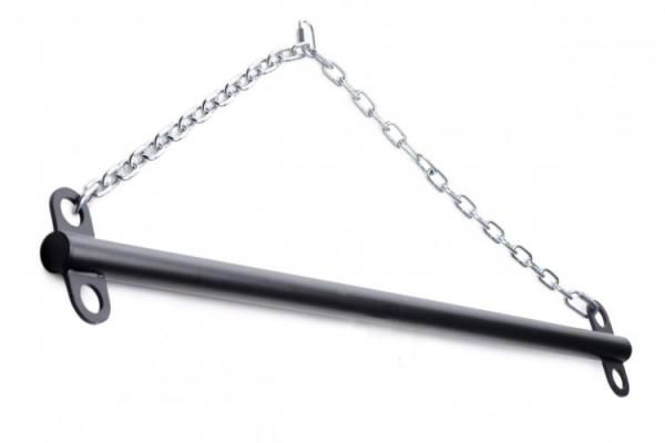 Spread them wide and suspend your lover to your whims! The Levitate Suspension Bar is made to be hung from a solid ceiling anchor point so you can suspend your lovers arms or legs in the air, locking up their limbs and exposing their body to all kinds of fun. Tease them, please them, or punish them for their bad behavior! This suspension bar can hold up to 350 lbs with confidence, and spreads your partner with 36 delicious inches – suspend their legs and support their body with a table or bench and enjoy their forbidden fruit, or suspend their hands, blindfold their eyes, and gag their mouth for a more traditional BDSM scene. Handles and wrist cuffs sold seperately. Measurements : Bar length 36 inches, bar diameter 1.25 inches, chains length 20 inches Materials : Steel Color : Black Note : Handles and wrist cuffs sold separately