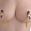 Lure Adjustable Nipple Clamps With Gold Spikes. These nipple clamps are accented with gold spikes for an exotic look and feel. The black coated rubber tips add to the exotic look and provide a comfortable grip. The gold easy to use screws leave adjusting the pressure, literally at your fingertips, to create relentless pleasure and pain. Measures 4 inches long, clamps open up to 0.5 inch.