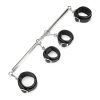 Take full domination over an eager partner with the Spreader Bar with Wrist andamp; Ankle Cuffs that will bind their arms and legs to keep them firmly in a bent over position. The padded cuffs comfortably secure around the wrists and cuffs and buckle in place. The cuffs are attached to quick-release D-rings that easily detach when necessary. The spreader bar can be expanded to get into a more widely spread position to allow for better access and to accommodate all bodies. Enjoy this bondage accessory that`s perfect for all couples in all kinds of positions. This kinky accessory is easy to store with its sleek shape.