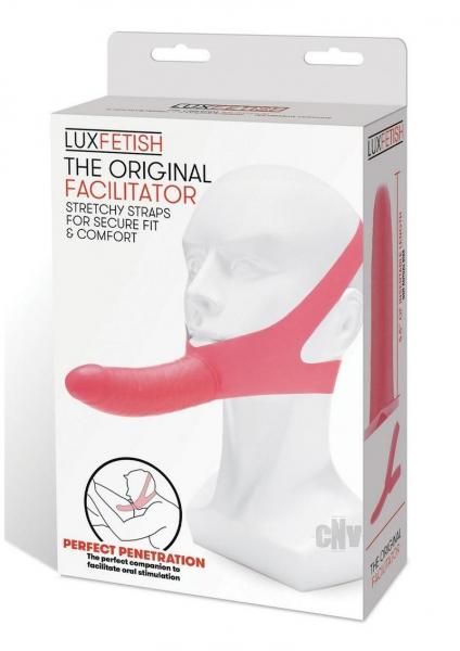 Orgasms are within reach with The Original Facilitator that turns anyone`s face into the ultimate penetration station. Featuring two straps that wrap around the head and at the base of the neck, The Original Facilitator features a curved dildo that sits on the wearer`s chin, leaving their mouth available for giving oral pleasure. This unisex device is perfect for all fans of kinky play and oral stimulation, and its sleek pink look and portable size makes it easy to store and travel with. Made of body-safe, easy to clean material, this accessory is a must for adventurous couples.
