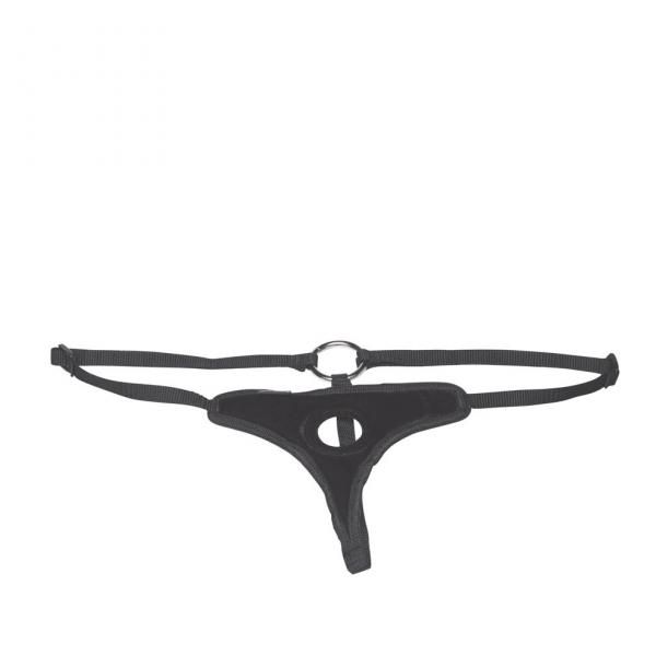 Strap it on and take control with this sleek black velvet harness from Lux Fetish. Fully adjustable harness can accommodate any dildo with a flared base. Great for new initiates just discovering the joys of deep penetration, or for experts looking to add another tool to their arsenal. Four way adjustable straps fit hips up to 60 inches. Please note no attachment or dildo included. Sold separately.