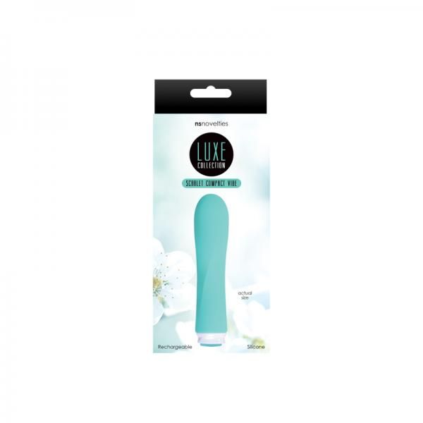 Luxe Compact Vibe Scarlet Turquoise Green Mini Vibrator. Luxe Rechargeable Compact Vibes redefine luxury. Designed for performance as well as aesthetics, each beautiful Compact Vibe is coated in silky smooth silicone . All 3 designs are available in creamy ivory, vibrant pink, beautiful turquoise and raven black.