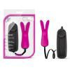 Features: amplify your pleasure by using the rabbit ears to hug your clitoris. The rabbit ears to envelop and tease your nipples. High to low multiple speeds of vibrations with a simple turn of the dial. Flat anti-tangle cable. Made of pure platinum cured Silicone for quality and safety. Bullet vibrator requires 2 AA batteries. Length 3.5 inches, width .9 inch.