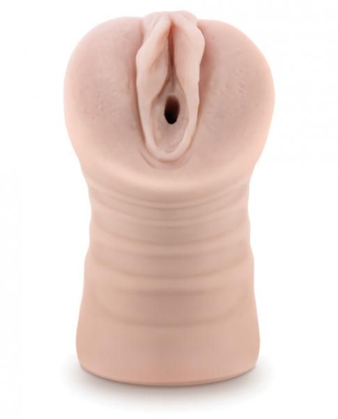 M for Men Rain Vanilla Beige Pussy Stroker from Blush Novelties. Soft feel. Soft and inviting pussy will engulf your shaft. Power. One speed, waterproof bullet vibrator heightens stimulation. Easy to use. Open end ensures Rain stroker is also easy to clean and care for.