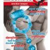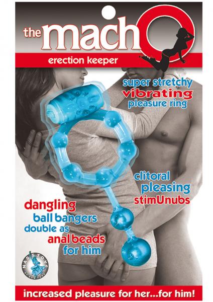 This super stretchy erection ring will create a firmer longer lasting erection. Vibrating bullet and clitoral stimu-nubs will send your partner over the edge, and the dangling ball bangers double as anal stimulation for him. Micro battery included.