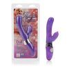 Elegantly designed to tease and please. Curved shaft for maximum satisfaction. Dual motors. 3 powerful speeds. Contoured handle with soft touch control and designer platinum decor band. Safe and pure for body and pleasure made using phthalate free materials: unscented Thermoplastic Rubber TPR massager, ABS plastic handle, ABS plastic with silver plating decor ring, Silicone button. Vibrator requires 2 AA batteries, not included. 3.75 inches by 1.25 inches shaft. 1.75 inches by 1 inch stimulator.
