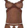 From the Exposed by Magic Silk Collection, this style includes: a cami featuring cutout designs on each side, lace trim in the front and sides, adjustable shoulder straps with gold-tone sliders in a lace and elastic 2-strap design on each side, and a matching crotchless lace-trimmed panty, with a peek-a-boo design in the front, in a boyshort style.