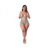 From the Exposed by Magic Silk collection, this style includes: a demi bra featuring hook and eye closure in the back with an attached collar harness, clear o-ring details throughout, and a matching panty with an attached garter.