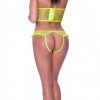From the Exposed by Magic Silk collection, this style includes: a bralette featuring elastic adjustable shoulder straps with gold tone sliders, swan hook closures in the back, gold o-ring details throughout, a matching thigh garter with adjustable straps and gold tone sliders, and a matching cheeky panty with two cross-strap details.