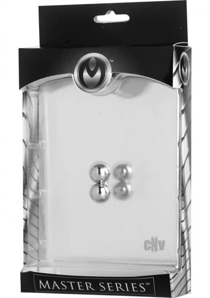 Bring them to their knees in powerfully pinched pleasure. This set of two ultra magnetized orbs may be small in size, but these intense balls pack some serious pressure. Once placed on sensitive flesh, these extremely powerful magnets begin to apply pressure. Make a game of seeing how long they can keep these pinching set of extra strong magnets in place. As your plaything relaxes, the pressure will continue to give them what they have been craving. Measurements: Each ball measures 0.37 inches in diameter. Material: Metal coated magnet. Color: Silver. Note: Two magnetic balls included