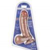Major Dick Navy Caramel Big Balls Dildo features harness compatible.PVC. Suction cup base for solo use. Just stick it onto any flat surface. Authentic phallic detail. 6.5 inches by 1.6 inches.