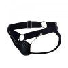 Male Basics DNGEON Chain Jockstrap Black O/S is hanging for display. The Chainlink Jockstrap is made of strong faux leather in sleek black. With minimal coverage at the back, sweat can evaporate more freely offering the wearer a more comfortable fit. A chain link pouch at the front supports the penis without scrimping on sex appeal, while wide straps sit on the hips for a supportive finish. More information SKU DMBL02. Color Filter Black. Material Faux Leather Jock Strap, metal rings, chains. Brand DNGEON. Faux Leather, Metal rings materials. How to measure for size: take a measurement tape and your posture should be nice and straight, without holding in or sticking out your stomach, Locate the bones on the right and left side of the abdomen. For Male Basics Underwear measure approximately 5 Inches under the belly button. Now locate the range between any of the values on the table and that would be your size. One size fits men with 30 inches to 36 inches waist.