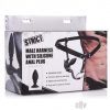 Keep your partner stuffed and ready for action! This harness combines a hard, unrelenting metal cock ring with a rippled silicone butt plug. Pull the penis and scrotum through the ring to create a rock-hard and ultra-sensitive erection. Push the tapered tip of the plug in and enjoy your partners pleasure as the ridges pass in afterwards. Tighten the straps so that they feel trapped and enjoy their desperation! The plug can also be removed to play with on its own, with a convenient suction cup base. Not compatible with silicone lubricant. Clean with mild soap and warm water.
