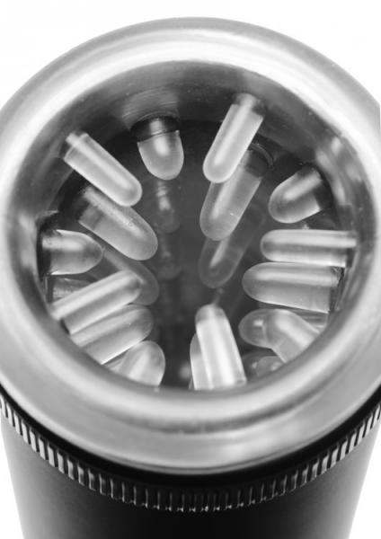 Lovebotz line Master Bot Super Powered Automatic Stroker is a super powered masturbator that does the hard work for you! Enjoy ultimate masturbation sessions with the push of a button, or add to the experience with your own stroking action. Within the hollow chamber is a soft sleeve that wraps around your rod and heightens the experience with rows of strategically placed ticklers that will massage your rod as you stroke. With the simple two speed controller switch, and the exhilarating textured interior, you are assured an explosive finish with the height of stroker technology. Simply lube up, slide in, and let Master Bot do all the work!