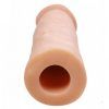 Slide into the Mega Penis Enlarger Sleeve and your size will be massively increased! This thick, stretchy, ultra realistic sleeve fits snugly around your shaft for extra staying power and an instant size boost, no creams, pills, or devices needed. The end is a solid extension that gives you another 2 inches in length! The Mega Enlarger Sleeve features thick walls of ultra realistic material that will add nearly another inch to your girth as well! This lifelike rubber is firm, yet squeezable, just like the real thing! For a custom fit, the bottom can be cut to size with a pair of scissors. Remains securely in place, with a hollow shaft that provides a snug fit. Guaranteed to add thickness and length and as easy to use as a condom, use the Mega Enlarger Sleeve today and enjoy your new longer, thicker, bigger rod!