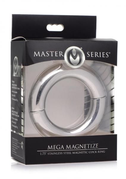 Magnify your manhood with this Stainless Steel Magnetic Cock Ring! This weighty cock ring is designed to enhance your package and your pleasure – wrap your cock and balls and increase blood flow to your member for a harder, firmer erection. The Mega Magnetize Ring also increases your penile sensitivity to maximize pleasure for you and your partner! The magnetic closure makes it easy to equip this metal ring on and off your package, opening the door to beginners and experts to the world of metal cock and ball rings with little risk. The stainless steel material is naturally hygienic, nickel-free, and rounded near the closure to prevent pinching when equipping. Comfortable weighted at 9 ounces to create a kinky downward pull, and constructed with a 1.75 inch inner diameter that fits most package sizes. Measurements : 3 inch diameter, 1.75 inch (45mm) inner diameter, 0.6 inch ring thickness, 9 ounces in weight Materials : Stainless steel (nickel-free) Color : Metal Key Features: Enhance Your Erection: Increase sensitivity and duration of your or your partner’s erection; use in combination with pumps and other toys for a powerful erection Magnetic Closing Design: Easily clasp this cock ring around your cock and balls thanks to the powerful magnets hidden within; rounded edges prevent an uncomfortable pinch Weighty and Smooth: Weighing in at 9 ounces, this hard and smooth metallic cock ring gives a satisfying downward pull on your package Nickel Free Strainless Steel: Constructed with a sturdy and easy to maintain stainless steel material that is nickel free for body safe fun