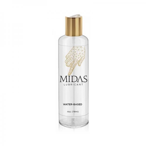 Midas is our super slick lube formula that glides on like liquid velvet and easily rinses off of skin with water. Delight in feeling every sensation with this water based lubricant that minimizes irritation, discomfort and dryness. Midas is safe for use with latex condoms but also great for solo play. Get the Midas touch, the Gold Standard of Lubricants.