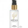 Midas is our super silky water-based lubricant that simulates realistic color and texture and brings your intimate moments to life. This formula glides on like liquid velvet and easily rinses off the skin with water. Delight in feeling every sensation with this water-based lubricant that minimizes irritation, discomfort, and dryness. Midas lubricant is a pH-Balanced for ideal vaginal conditions, matching one’s natural lubrication, but it is also great for solo play. Midas comes in 2 and 4-oz. bottles with convenient modern tear drop pump.