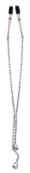 The pair of sparkling teardrop crystals at the end of each 18 inches bejeweled chain look inviting. The only tears that will be shed this night will be those of unbridled passion.
