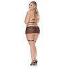 An alluring 3-piece plus size ensemble with teddy, thong panties, micro skirt, strappy garters. The open front teddy splits at the bra line to accentuate erotic lace-up peek-a-boo cups above and lower angled panels below, anchored by thigh-high garters. Thong panties peek out behind a stretchy micro skirt that hugs the hips and leaves a cheek-peeking profile at the back. Made from stretchy red and black lace brocade, these separates can be worn alone or layer beautifully for a truly stunning look. Teddy, garter, thong panties andamp; micro skirt ensemble Peek-a-boo lace-up teddy cups Angled teddy panels attach to thigh-high garters Single string thong panty with black mesh panel at front Hip-hugging, cheek-peeking micro skirt Scalloped edges flatter andamp; accentuate curves Made from red andamp; black stretchy lace brocade Polyester andamp; elastane blend No underwire Adjustable straps Hand wash Plus size andamp; stretchy