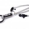 Humiliate your plaything with a device that pulls their nose up like a piggy, forces their mouth open, and pinches their nipples! The Degrader does exactly as its name suggests, prying their mouth open with a pair of plugs that finds leverage in their nose and an adjustable spreader that tugs down on their bottom lip! Lightweight chains lead down to a set of sadistic vinyl-tipped clamps. These vicious nipple clamps are also adjustable in tightness using a similar spring system controlled by screw knobs. Take your play scene to a new level with this twisted BDSM accessory!