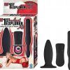 Explore your own erotic adventure with this 10 function vibrating butt plug and pleaser kit. Dual multi-function vibration. Pleaser is 5 inches, butt plug is 3.875 inches. Waterproof, phthalate free, RoHS compliant. Vibrator requires 2 AA batteries, not included.